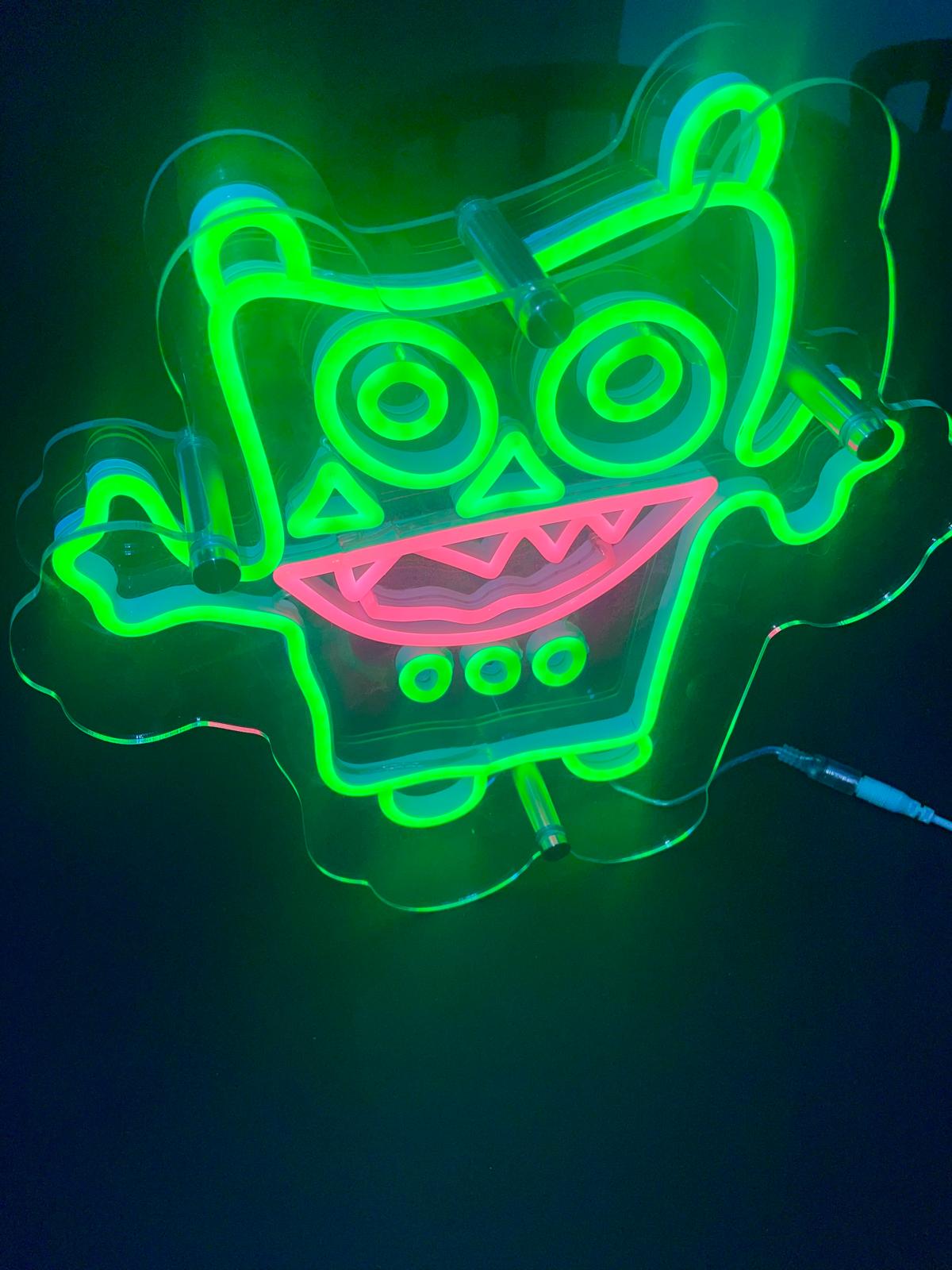 Vi tager altid udgangspunkt i det indsendte stykke unikke børnekunst, som vi forenkler og tilpasser, så det er muligt at lave i LED materialet.