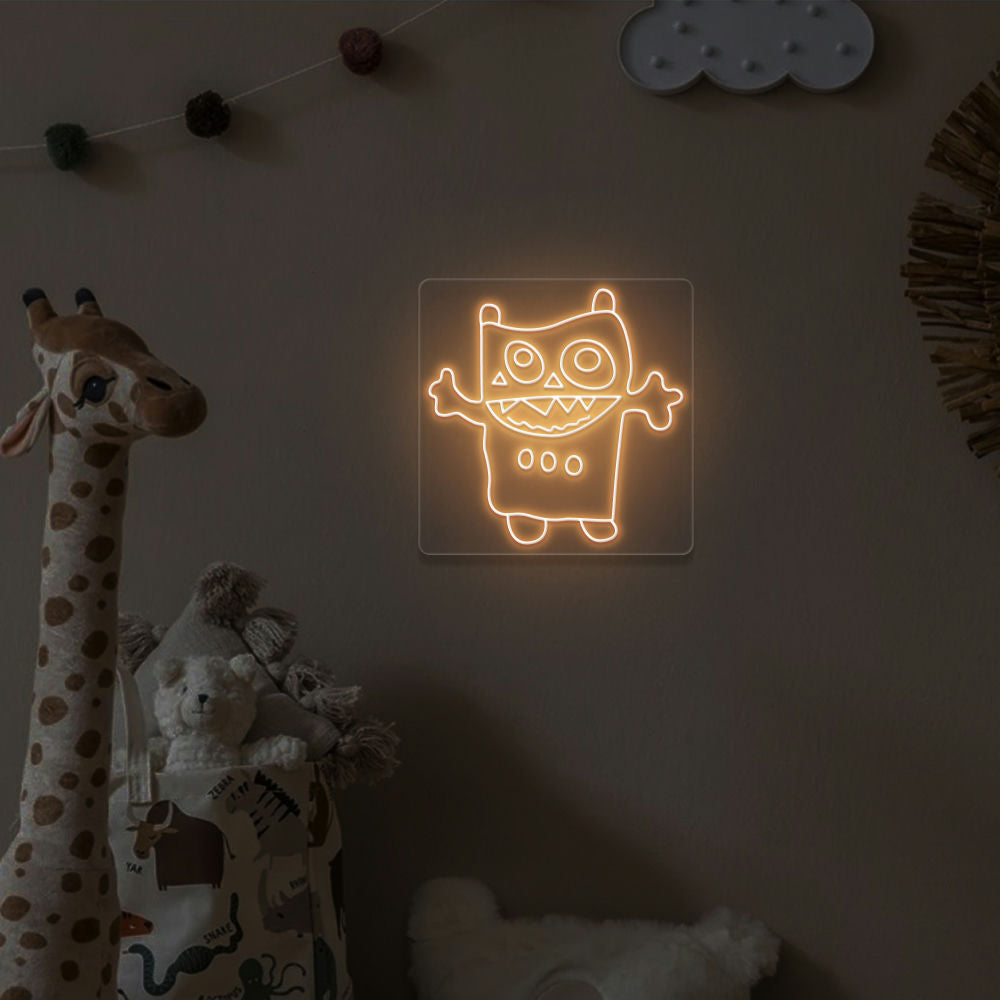 Din tegning omdannes til LED lys og håndlaves på vores værksted. Du kan vælge at få lyset i enten ensfarvet eller i tegningens farver, ligesom vi kan lave bagpladen enten firkantet eller tilskåret til tegningen.